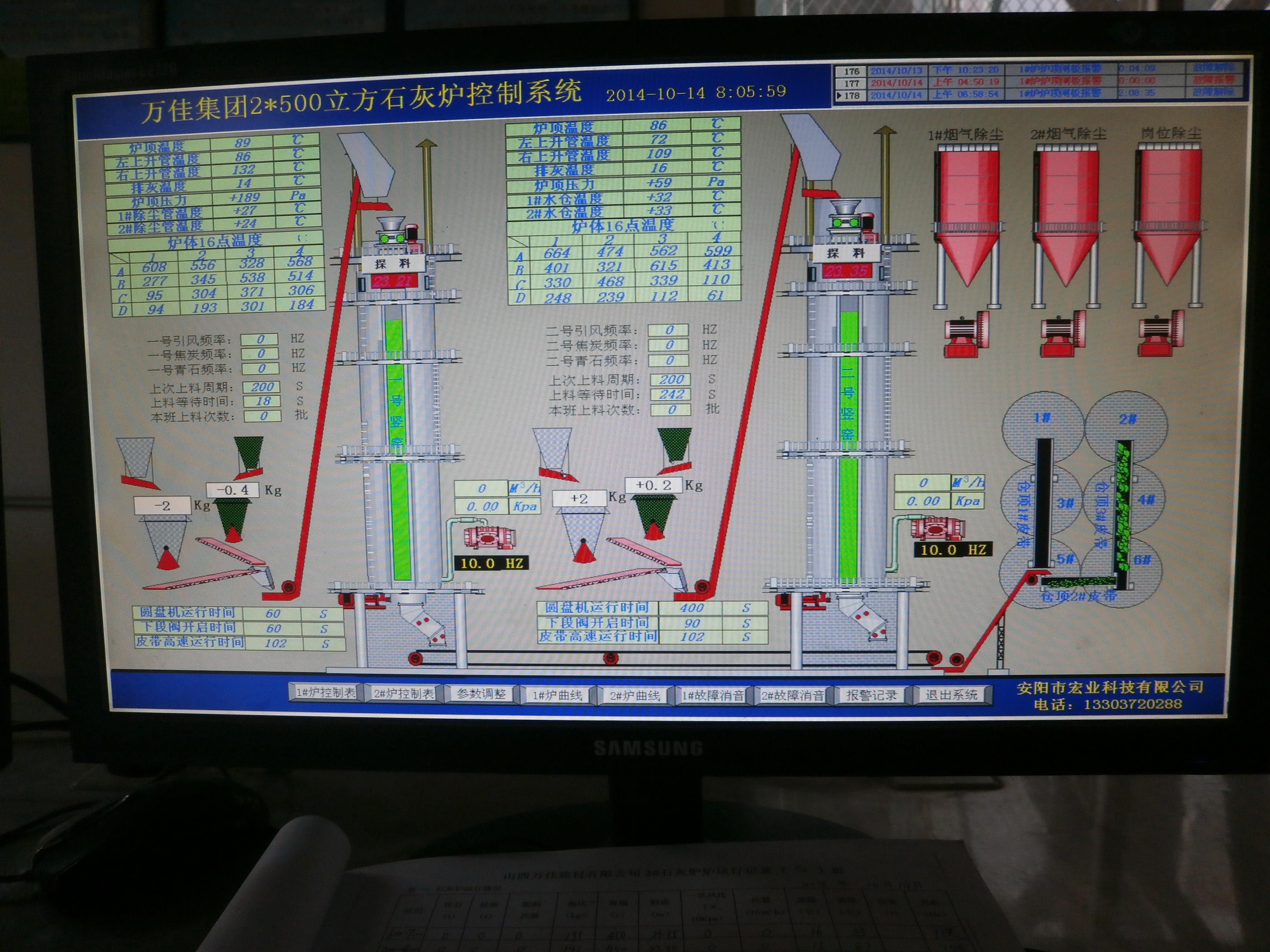 通過程序控制石灰窯設(shè)備(混配系統(tǒng)、卷揚機、旋轉(zhuǎn)布料器、兩段密封閥、出灰機等設(shè)備)完成原燃料自動稱量與均勻混配、豎爐煅燒、成品自動出灰等生產(chǎn)過程的全自動控制,故障自動檢測并實現(xiàn)中文語音報警。